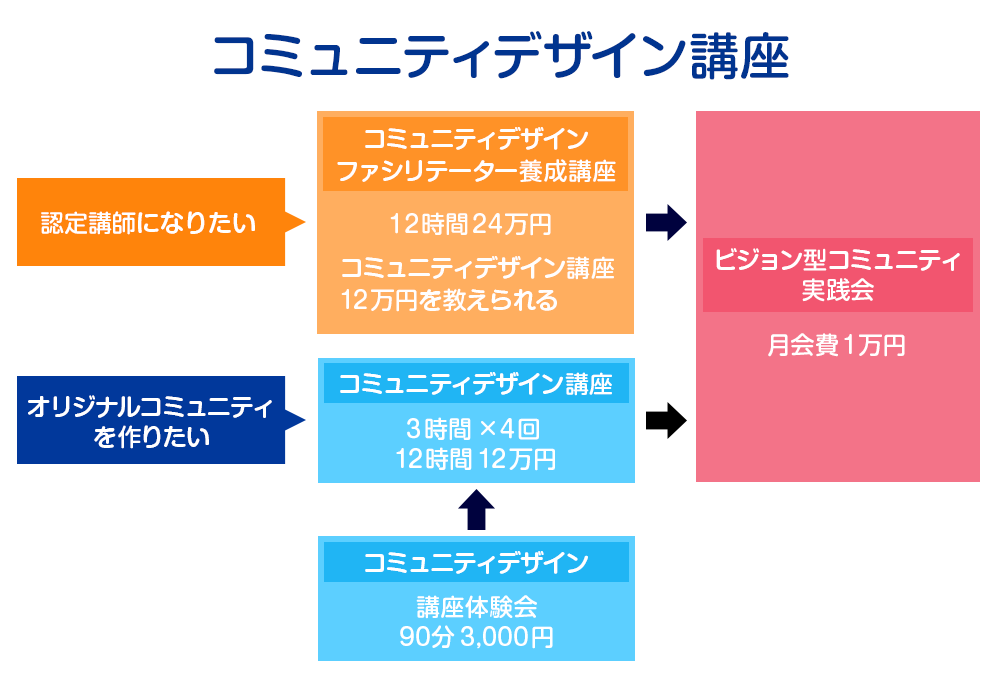*ビジョン型コミュニティ実践会入会は、安心・安全な場を確保するために、コミュニティデザイン講座の受講修了が必須です。