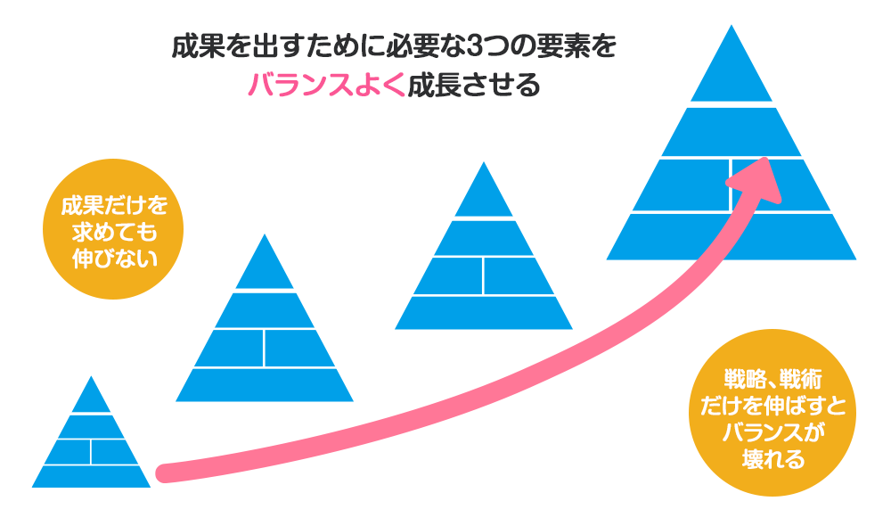 サクナビで学び、実践していくのはこの3つの層をバランスよく成長させていくことです。